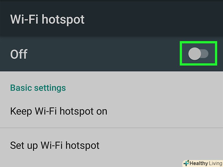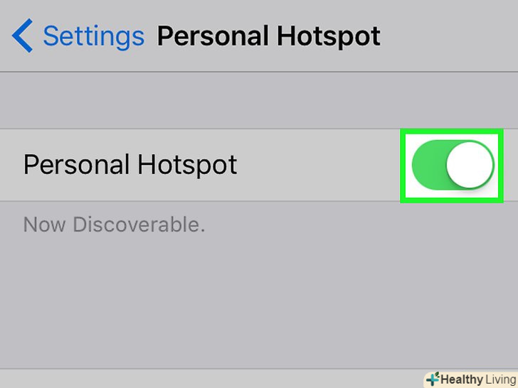 Пересуньте повзунок уМобільна точка доступу в положення «включити». Ця опція знаходиться посередині сторінки. Точка доступу буде активована і стане доступною на комп'ютері.- На пристрої Samsung цей повзунок знаходиться у верхній частині екрана.