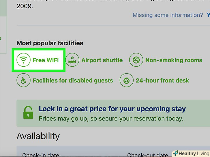 Бронюйте номер у готелі безпосередньо на сайті готелю.більшість великих готелів надають безкоштовний Wi-Fi як бонус, якщо номер бронюється на офіційному сайті готелю або по телефону.[2]- У деяких готелях безкоштовний Wi-Fi можна отримати тільки в тому випадку, якщо зареєструватися в програмі лояльності цих готелів.