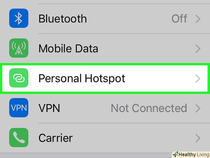 НатиснітьТочка доступу і режим модему.ця опція знаходиться у верхній частині екрана.