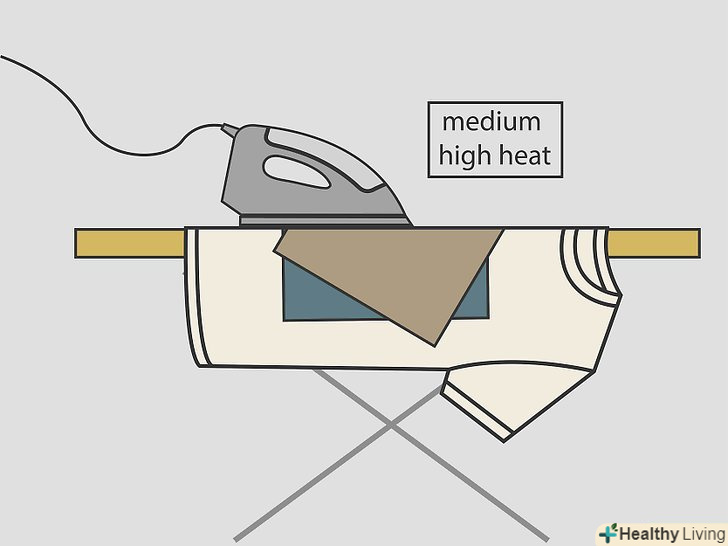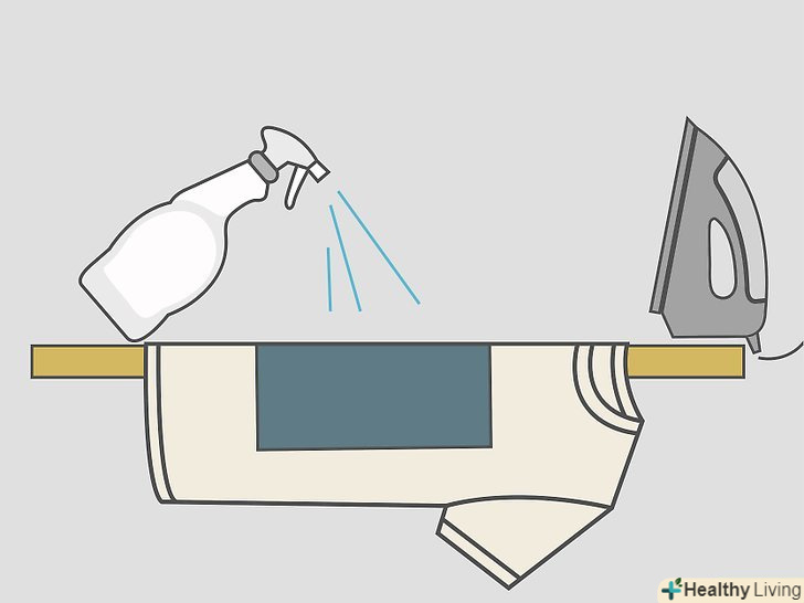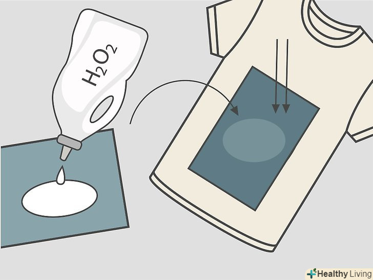 Прикладіть до плями тканину просочену перекисом водню. цей нетрадиційний прийом може працювати напрочуд добре, що робить його найпопулярнішим серед інтернет-експертів з виведення плям. [5] для початку знайдіть шматок старої тканини і змочіть його перекисом водню. Помістіть оброблювану річ на робочу поверхню, не допускаючи утворення складок, і прикладіть змочену перекисом тканину до ушкодженого місця.- Перекис водню має м'який відбілюючий ефект через що є хорошим рішенням при спробі усунути сліди залишені праскою. Перекис можна придбати за дуже доступною ціною в аптеках або продовольчих магазинах.