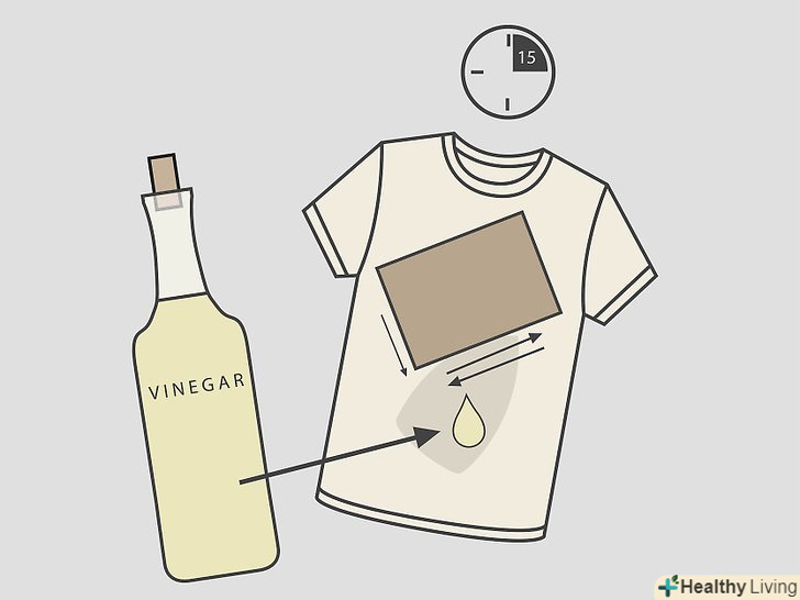 Полоскання зі столовим оцтом. ще один прийом для видалення слідів від праски - змочіть губку в оцті і потріть підпалене місце. Просочивши пляма оцтом, залиште виріб на 10-15 хвилин, потім прополощіть в холодній воді. Сушіть зазвичай.- Використовуйте виключно білий столовий оцет — ніколи Не використовуйте червоний винний або яблучний оцет, як і інші види оцту, так як вони можуть залишити нові, складні, плями.