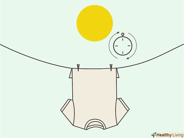 Вивісите на просушку під прямі сонячні промені. дістаньте річ з пральної машини і перевірте стан підпаленої області — швидше за все, пляма стане менш помітним. Для досягнення ідеального результату вам може знадобитися повторити прання кілька разів. Для сушіння тканини краще використовувати прямі сонячні промені, при наявності сприятливих погодних умов. Сонячні промені добре освітлюють всі типи темних і непривабливих плям на тканині, включаючи плями від праски. [4]- Не залишайте річ на сонці більше одного дня. При тривалому впливі сонячні промені можуть не тільки привести до вигорання квітів, але і поступово послабити тканину, зробивши її більш сприйнятливою до пошкоджень.