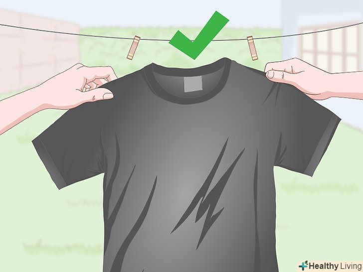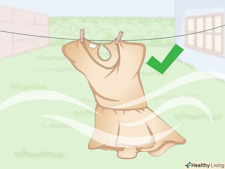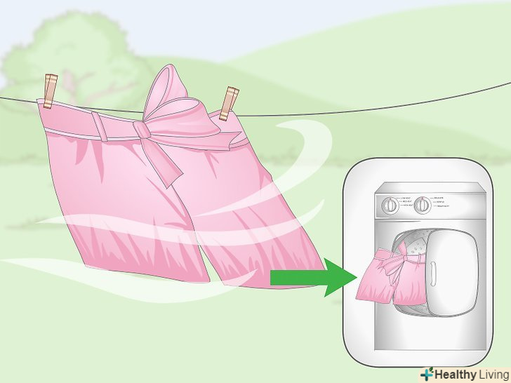 Оцінити отриманий колір можна, тільки коли річ повністю висохне. пофарбовані речі можна сушити на мотузці або в машині, в залежності від складу тканини і ваших уподобань. У будь-якому випадку, коли річ висохла, огляньте її, щоб оцінити результат. Переконайтеся, що барвник ліг рівномірно і на тканині немає патьоків або світлих плям. [19]- Якщо це необхідно, річ можна пофарбувати повторно.
