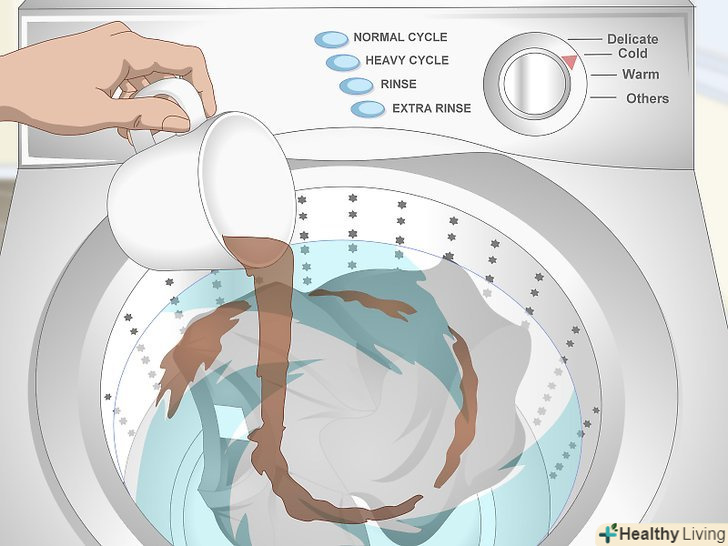Чорний одяг можна освіжити, замочивши її в розчині кави або чаю. якщо ви шукаєте простий і недорогий спосіб повернути чорним речам первісний вигляд, просто заваріть 2 чашки (500 мл) дуже міцної кави або чаю. Покладіть чорний одяг в пральну машину і включіть стандартний режим прання. На етапі полоскання зупиніть машину, відкрийте дверцята і влийте в машину проціджений кави або чай. Дочекайтеся закінчення циклу прання і розвісьте одяг для просушування. [22]- Одяг, який сушать в машині, вицвітає швидше, ніж при сушінні на повітрі.