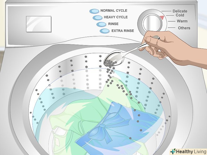 Для додання яскравості білим речам в пральну машину можна додати питну соду. питну соду, яка є практично в будь-якому господарстві, можна використовувати для відновлення яскравості тканин, особливо білих. Просто додайте 1/2 склянки (90 г) соди в барабан пральної машини разом з одягом і звичайним засобом для прання. [20]- Питна сода також допомагає усунути в'їдаються в тканину неприємні запахи. [21]
