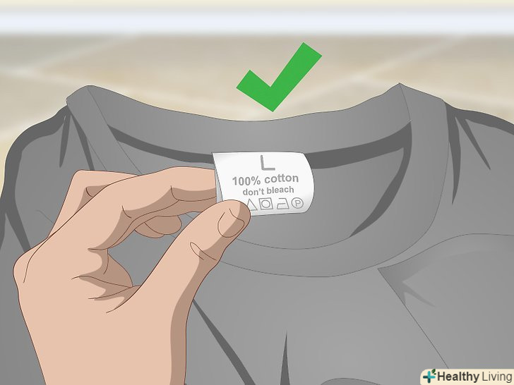 Перевірте на етикетці склад тканини, щоб визначити, чи піддається вона фарбуванню. одні тканини фарбуються краще, інші гірше, тому перш ніж намагатися відновити колір улюбленого предмета одягу за допомогою фарбування, прочитайте склад тканини на етикетці. Якщо тканина містить не менше 60% натуральних волокон, таких як бавовна, шовк, льон, шерсть або рами, або якщо одяг зшита з нейлону або віскози, ймовірно, барвник буде триматися на ній добре. [8]- Після фарбування сумішева тканина з натуральних і синтетичних волокон буде виглядати світліше, ніж тканина, повністю складається з натуральних волокон.