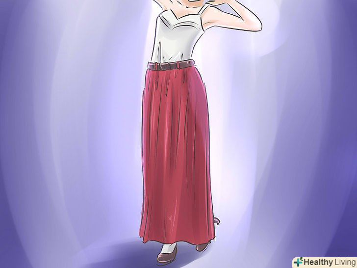 Приміряйте спідницю при хорошому освітленні, перш ніж зробити покупку. походіть в ній і подивіться, чи комфортно ви себе відчуваєте. Якщо ви спотикаєтеся, вона занадто довга. Подивіться в дзеркало. Більш раціональний стиль зробить фігуру більш стрункою, а ось вільна спідниця в богемному стилі візуально додає вагу і підійде не кожній фігурі.- Текстура тканини також впливає на те, чи підійде вам спідниця. Приміряйте максі спідниці з різних тканин, щоб зрозуміти, що саме вам підходить.