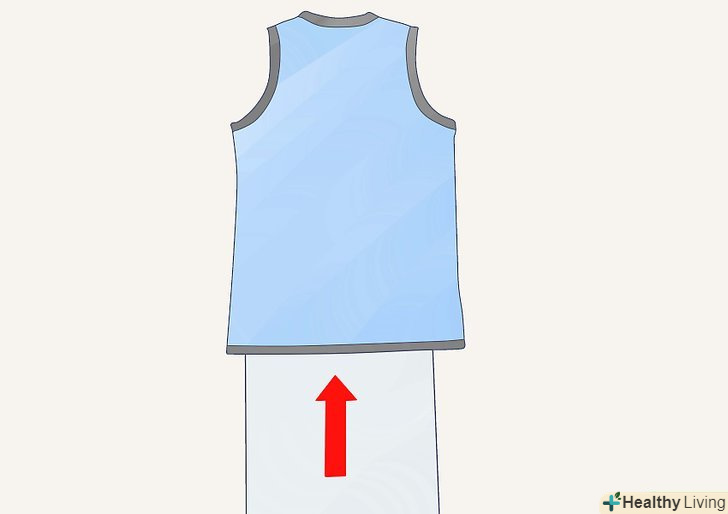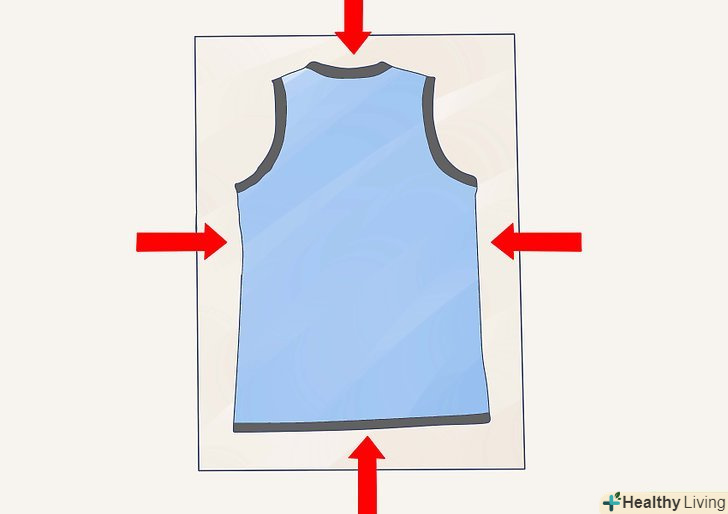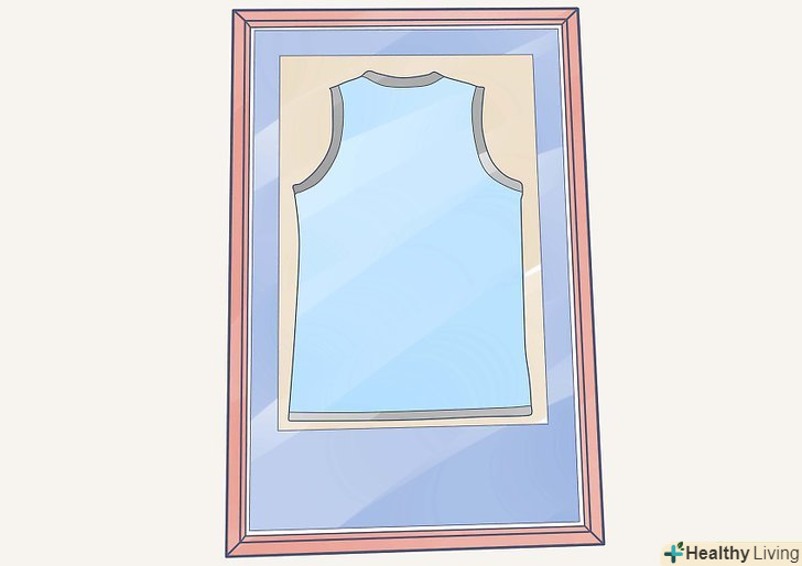 Помістіть картон всередину майки.- Видаліть зайві ділянки картону, які залишаються на виду. Картон можна побачити лише уздовж лінії шиї або біля основи майки.