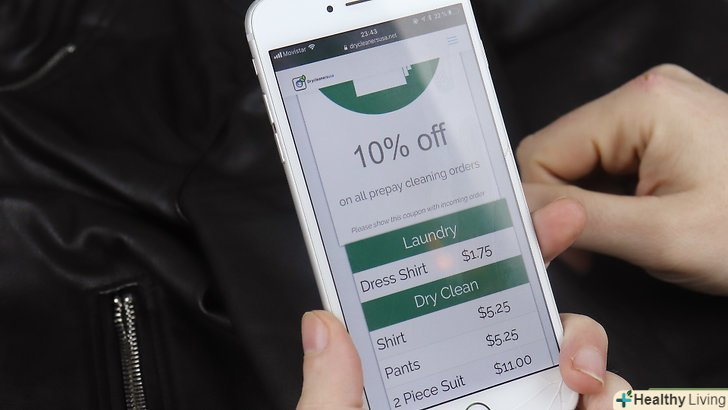 Вивчіть етикетку на куртці на предмет спеціальних рекомендацій по догляду. практично всі шкіряні речі, що продаються в магазинах, мають ярлик з інструкціями по догляду. Оскільки існує безліч видів шкіри, і не кожен може розрізнити їх, якщо він не є в цьому експертом, завжди рекомендується дотримуватися конкретних рекомендацій на етикетці (якщо, звичайно, така є). [11] нижчеописані методи в цілому зазвичай безпечні, якщо ретельно слідувати їм, проте жоден з цих методів не гарантує безпеки для всіх видів шкіри.- Почистіть оброблену шкіру вологим шматком тканини. перевірте куртку, капнувши на неї всього одну краплю води. Якщо крапля води залишається на поверхні, то можна без шкоди прати бруд з шкіри, користуючись злегка вологою тканиною. [14] якщо вода абсорбується, а шкіра темніє від цього, не використовуйте воду.