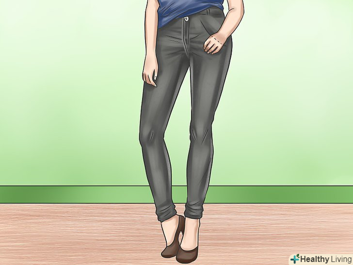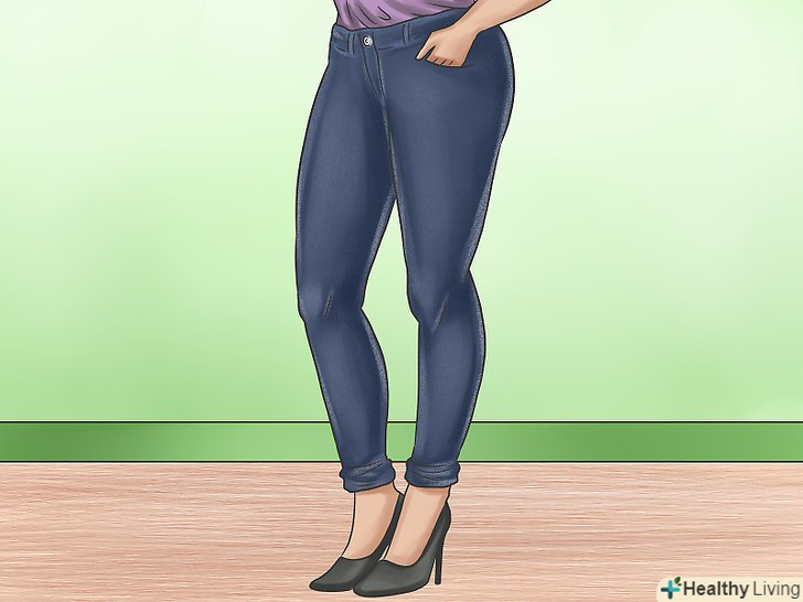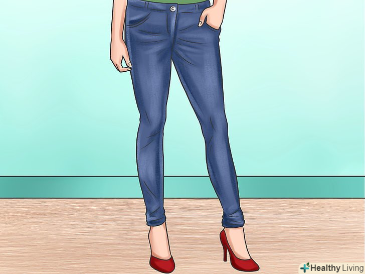 Підберіть ключовий відтінок. джинсова тканина буває безлічі різних кольорів, і вицвілі джинси то входять в моду, то виходять з неї. Виберіть джинси злегка знебарвлені по центру ноги. Так ваші ноги будуть виглядати довше і стрункіше. [5]- Уникайте джинсів, знебарвлених на стегнах або ззаду. Так ви лише зробите проблемні зони більш очевидними.