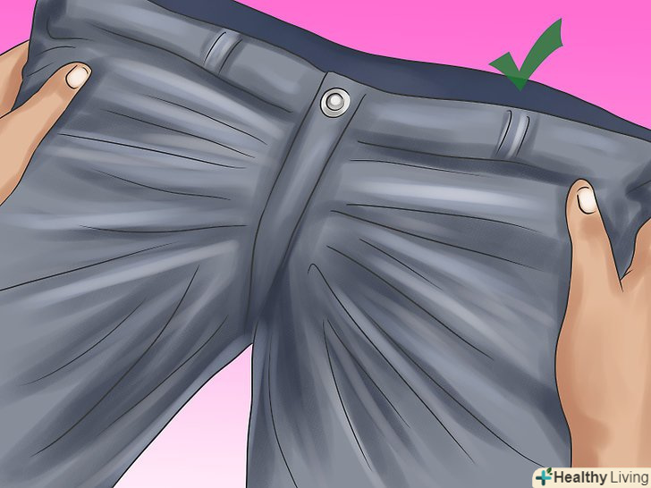 - Шукайте джинси з контурним поясом, щоб не утворювався проміжок між спиною і поясом брюк. [4]