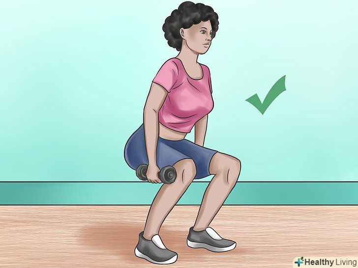 Робіть присідання. так само, як і випади, присідання дозволяють опрацювати сідниці, стегна і м'язи кора. Для початку поставте ноги на ширині плечей, шкарпетки злегка в сторони. Опускайте тіло до тих пір, поки стегна не опиняться під кутом в 90 градусів від підлоги. [8]- Тримайте корпус вертикально і дивіться прямо перед собою.