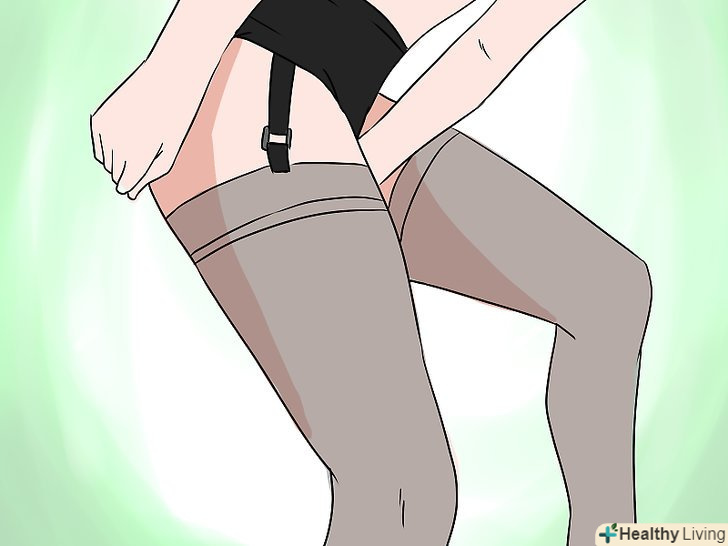Одягніть колготки або панчохи. можливо, ви вирішите відмовитися від колготок або панчіх, щоб вам не було жарко, але це виглядає непрофесійно, особливо в діловому світі.- Одягніть колготки тілесного кольору, який відповідав би кольору вашої шкіри.