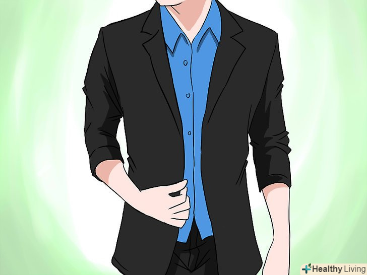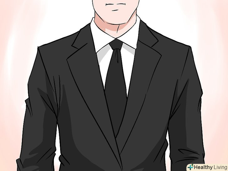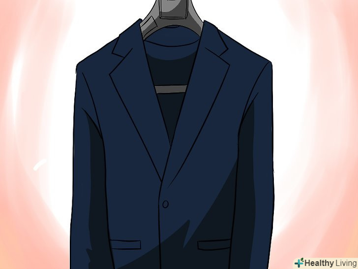 Підберіть костюм. виберіть костюм з легкої тканини (шерсть або бавовна). Якщо вирішите надіти костюм з вовни, вибирайте жакет з підкладкою до середини або на чверть довжини – так тканина буде дихати, і вам буде не жарко. [2] у жакетів з підкладкою до середини підкладкова тканина є в рукавах і з боків. На спині підкладка є тільки у верхній половині.- Одягніть костюм блакитного, сірого або будь-якого іншого світлого кольору. Відмовтеся від чорного - він виглядає похмуро.