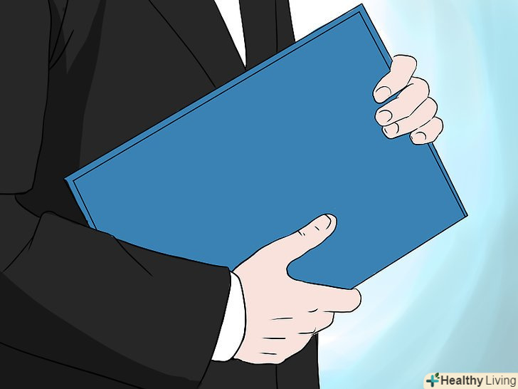 Візьміть портфель або шкіряну папку. залиште улюблену сумку-мішок, рюкзак або валізу на колесах будинку. Щоб виглядати як професіонал, вам буде потрібно портфель або сумка нейтрального кольору.
