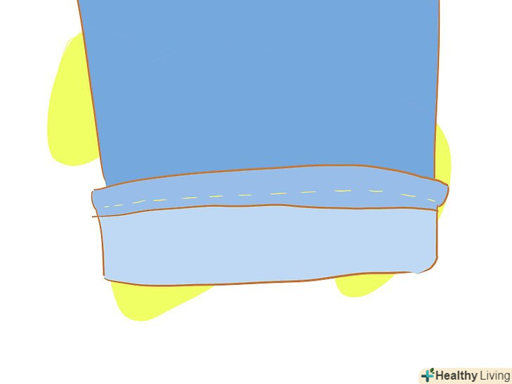 - Щоб зробити «велосипедний відворот» вибирайте джинси в обтяжку. Загніть штанину джинсів на правій нозі на 5-7 см. потім загніть її знову. Таким чином, слід піднятися до середини ікри для запобігання тертя, коли ви їдете на велосипеді або падаєте. Залиште штанину на вашій лівій нозі недоторканою. [5]