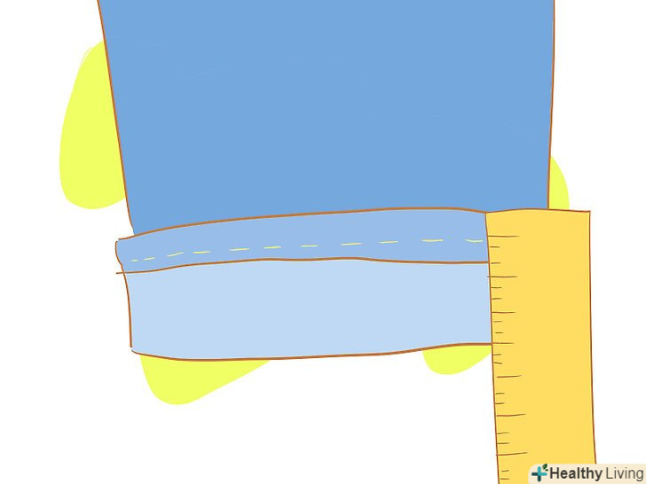 Підігніть нижній край джинсів на правій нозі на 2,5-5 см. Зупиніться, коли нижня частина згину трохи вище щиколотки. Скористайтеся лінійкою, якщо ви не впевнені, яка довжина краще. [1]