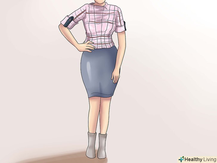 Наряжайтесь. носіть обтягуючу туніку в клітку або плаття з парою темних легінсів. Оберніть шарф або ремінь навколо талії і додайте кілька золотих аксесуарів, таких як намиста, браслети або сережки. Закінчите образ парою модних туфель на підборах.