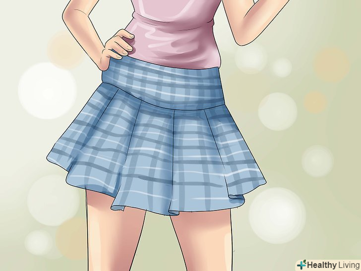 Носіть спідницю «Школярки». виберіть спідниця в клітку з традиційними кольорами, такими як червоний і чорний або темно-синій і чорний. Скомбінуйте її з простою білою сорочкою на ґудзиках. Носіть пару чорних гольф, і взуйте на якісь прості чорні балетки.
