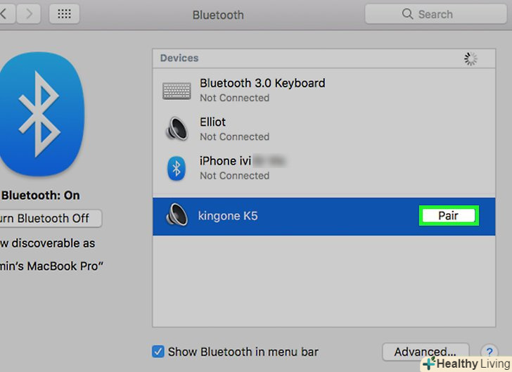 - У macOS натисніть "Підключити" у пристрої у вікні "Bluetooth". Тепер дотримуйтесь інструкцій на екрані-можливо, Вам буде потрібно ввести код сполучення.
