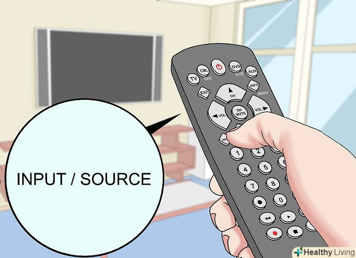 Натисніть кнопку на пульті або корпусі телевізора, яка перемикає джерела сигналу.ця кнопка позначена словом "Input «(вхідний сигнал) або» Source" (Джерело).