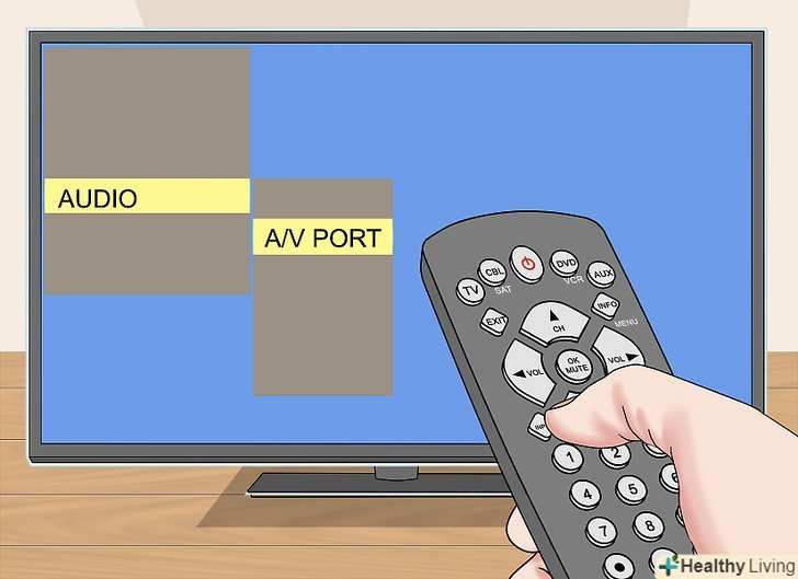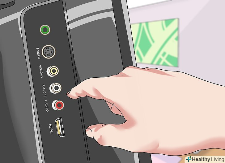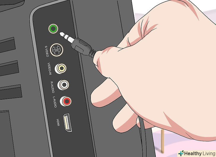 Знайдіть аудіовхід на телевізорі.як правило, на телевізорах таким входом є червоно-білий роз'єм RCA (композитний), через який йдуть відео і аудіо сигнали. Іншими аудіовходами можуть бути:- 3,5 мм роз'єм.
