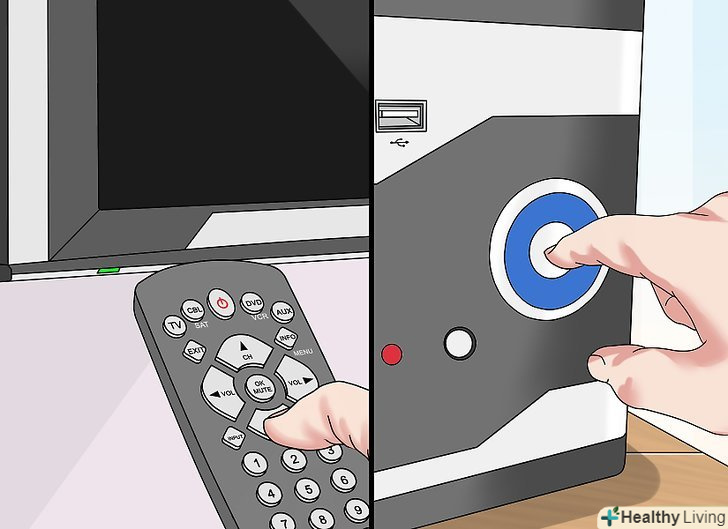 Виберіть роз'єм, до якого підключений комп'ютер.на екрані нічого не відобразитися, але з динаміків телевізора ви почуєте звук з комп'ютера.- Якщо звуку немає, збільште гучність на телевізорі і на комп'ютері або перевірте налаштування звуку, щоб в якості аудіовиходу вибрати роз'єм для підключення навушників.