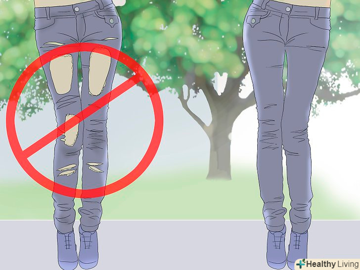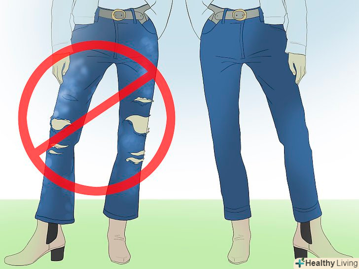Не носіть одяг з плямами. "варені" і особливо потерті близько кишень джинси аж надто в американському стилі. Їх слід також уникати.