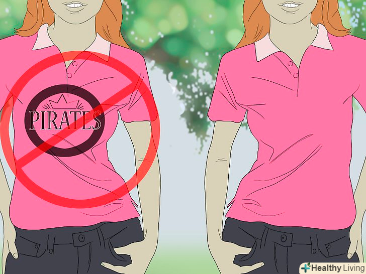 Не носіть речі з логотипами або знаком університету. Ви знаєте, ці сорочки з текстовими логотипами в вінтажному стилі або малюнками, через які вони виглядають, немов з спортивного відділу або неіснуючого університету? Це в американському стилі. Уникайте його, якщо ви хочете одягатися по-європейськи.- Однак такі малюнки (поряд з багатьма елементами американської моди) дуже популярні зараз.