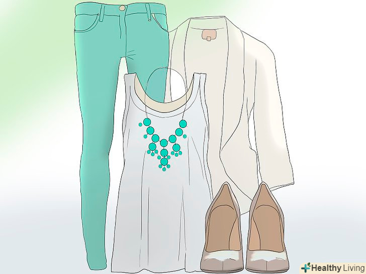 Носіть джинси. це міф, що європейці не носять джинси. Вони їх носять. Вони вважають за краще джинси середньої тональності, на відміну від нас, але в цілому будь-який колір Підходить. Зараз в Європі дуже популярні яскраво пофарбовані вузькі джинси, і їх також легко знайти в США.- Вузькі джинси часто носять в парі з більш вільними, довгими топами і черевиками або балетками.