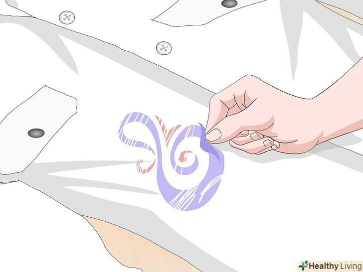 Виверніть предмет одягу навиворіт, розташувавши його внутрішньою стороною малюнка до себе. щоб видалити малюнок із зовнішнього боку речі, необхідно просочити ділянку з малюнком розчинником зсередини. Розташуйте вивернутий навиворіт предмет одягу на рівній поверхні перед собою. [8]- Найзручніше зводити малюнок, сидячи за столом або стоячи біля столу.