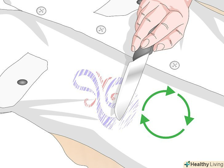Сковирніте малюнок ножем. обережно отскребите малюнок гострою стороною леза ножа. Від'єднайте від тканини частину малюнка за допомогою ножа, а потім зніміть його пальцями. [6]- Скребіть ножем убік від себе, щоб не порізатися.