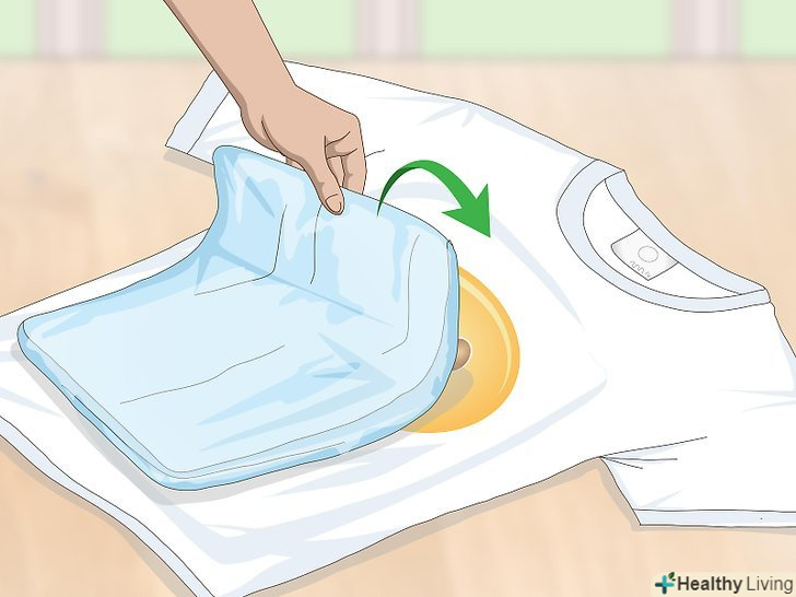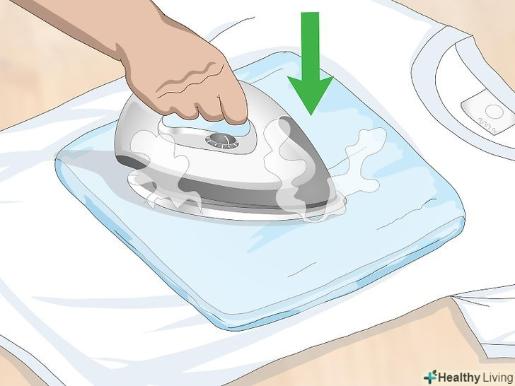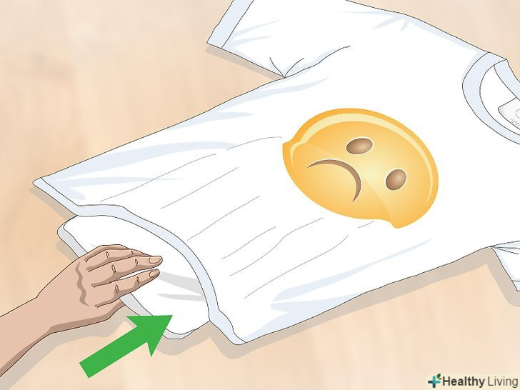 Підкладіть сухий рушник під малюнок з внутрішньої сторони предмета одягу. складіть рушник і покладіть його всередину речі так, щоб воно виявилося під малюнком. Воно захистить іншу сторону вашої речі від впливу високої температури праски. [2]- Якщо у вас немає зайвого рушники, підкладіть стару футболку або що-небудь м'яке, що ви не боїтеся зіпсувати гарячою праскою.