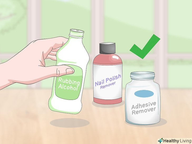Знайдіть розчинник. в якості розчинника підійде медичний спирт, рідина для зняття лаку або засіб для видалення клеять речовин. Ці продукти можна легко знайти в господарських і будівельних магазинах. Купіть достатню кількість розчинника, щоб його вистачило на просочення всієї ділянки одягу, покритого малюнком.- Також можна замовити в Інтернеті спеціальний засіб для видалення вінілових наклейок на одяг.