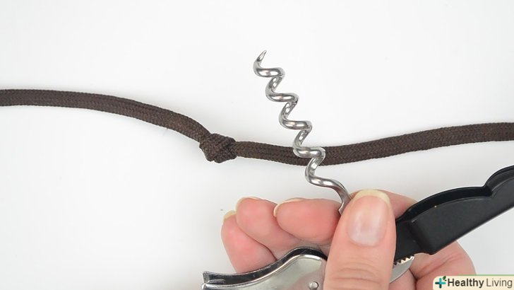 Дістаньте звичайний штопор. ви також можете використовувати інший тонкий металевий предмет, наприклад, голку для вузлів меншого розміру. Просто будьте обережні, щоб не проткнути і не пошкодити мотузку.- Вставте кінчик штопора між петлями мотузки у вузлі. зазвичай підійде будь-яке місце у вузлі.