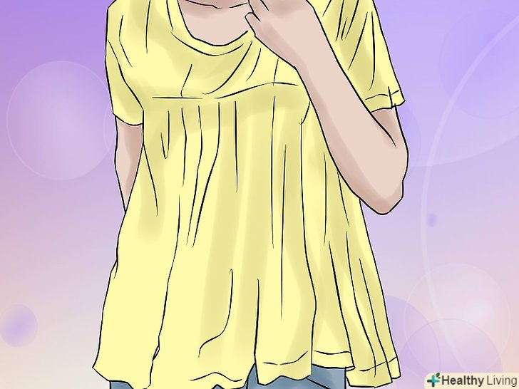 Зрозумійте, як поводитися зі збільшеним животом і грудьми. шанси, що ви скинете вагу, набраний за вагітність, дуже великі, але дуже важливо розуміти, що це не відбудеться за одну ніч. Через збільшення ваги і розтягування м'язів черевного преса живіт у вас буде більше, ніж зазвичай. Якщо ви годуєте грудьми, то ваші груди також буде більшого розміру. Хороші варіанти впоратися зі змінами у вашому тілі-носити довгі сорочки і піджаки, а також сорочки, що підкреслюють ваші плечі. Підкреслюючи плечі, ви візуально збалансуєте ваш образ.