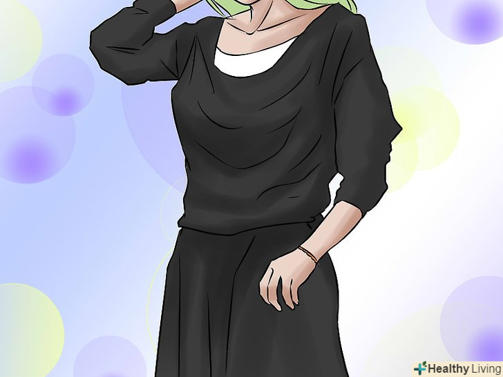 Не нехтуйте одягом чорного кольору. кожна жінка знає, що маленьке чорне плаття — основа гардеробу, яка повинна висіти в шафі кожної жінки. З цієї причини ця порада не повинна бути надто обтяжливою для вашого гаманця, оскільки існує ймовірність того, що кілька чорних нарядів вже присутні у вашому гардеробі. Хоча більшість жінок любить різноманітність кольорів, чорний колір дійсно може дуже стрункішою. Якщо вам обов'язково хочеться додати трохи фарб в ваш гардероб, спробуйте розставити акценти у вашому вбранні яскравими ювелірними виробами та аксесуарами. Накиньте на плечі різнокольоровий шарф або пов'яжіть його на ваші чорні штани, спідницю або плаття.