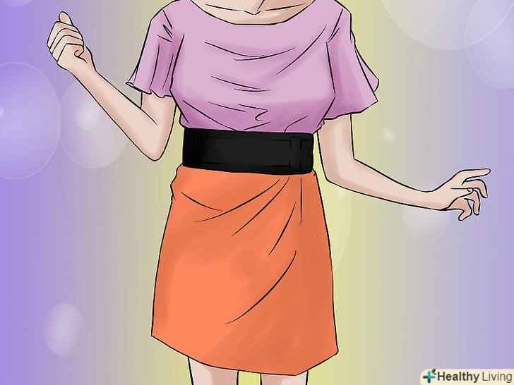 Одягніть широкий пояс. він може стати привертаючим увагу аксесуаром, який можна носити з різним одягом. Виберіть пояс нейтрального кольору і надягайте його на довгі светри і сукні. Це ефективний і модний спосіб заховати живіт після вагітності.