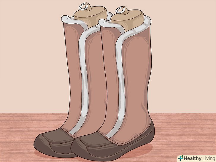 Вставте в халяву високих зимових чобіт колодки і зберігайте в такому вигляді. коли ви складаєте високі чоботи в шафу або недбало кидаєте в ящик, заламуючи при цьому верхню частину, вони, як правило, втрачають свою форму. Щоб запобігти подібному, вставте спеціальні колодки в халяву кожного чобота. Після ретельного очищення і полірування необхідно поставити їх в шафу пліч-о-пліч.- Якщо у вас не вистачає місця в шафі, ви можете зберігати свої чоботи в пластиковому контейнері. Покладіть пару чобіт набік в коробку. Зверху покладіть бавовняну футболку або мішок для взуття. Продовжуйте заповнювати коробку, чергуючи шари взуття та бавовни. Зберігайте закриту коробку в прохолодному, темному, сухому і чистому місці. [12]