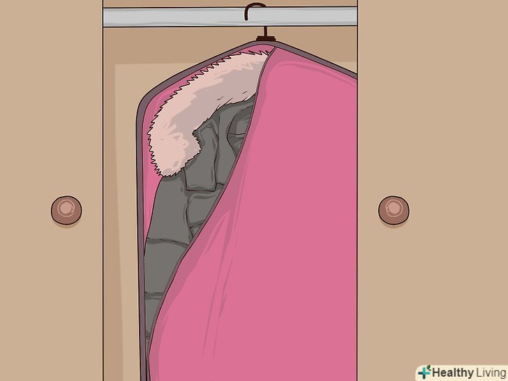 Повісьте хутряний одяг і сукні. хутряні вироби та сукні є єдиною осінньо-зимовим одягом, яка повинна залишатися на вішалці. Повісьте ці речі, а потім помістіть їх у тканинні мішки.- Пошиті з тонких, натуральних матеріалів сукні можете скласти і залишити в пластиковому контейнері для зберігання.