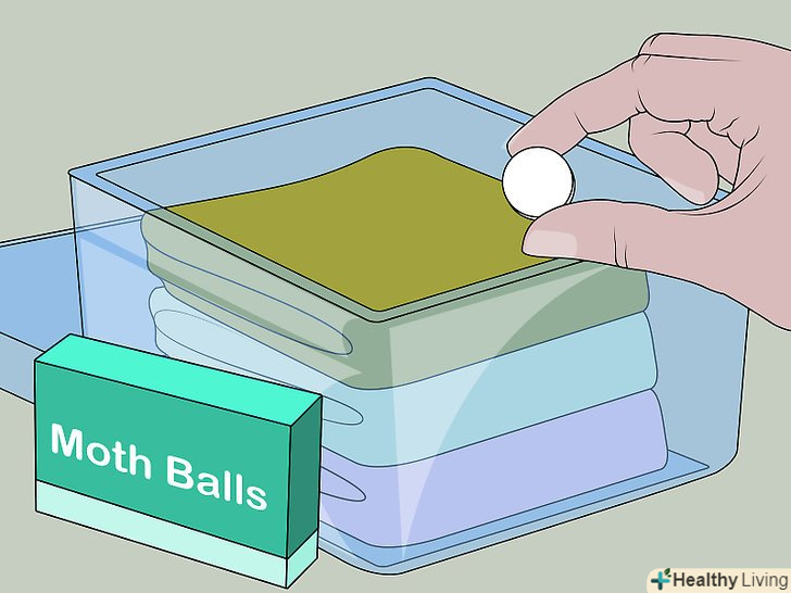 Помістіть одяг у коробку з кришкою. нафталінові кульки слід використовувати тільки в закритих і герметичних ємностях. Віддайте перевагу пластиковій коробці або мішку для одягу, який можна закрити і зберігати в шафі або під ліжком. Помістіть одяг у коробку. [1]- Моль харчується продуктами тваринного походження, таким як шерсть, шкіра і повсть. Вони навіть прогризають синтетичні волокна, щоб дістатися до плями поту.