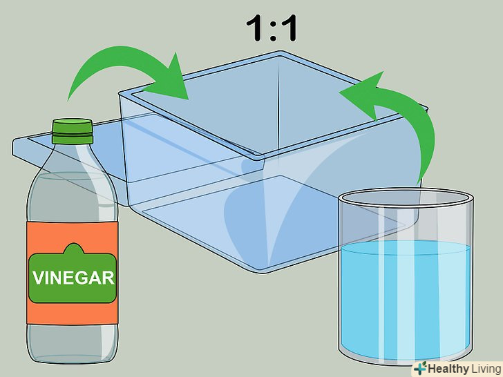 Вимийте коробку оцтом. за допомогою оцту можна також прибрати запах з коробки. Налийте в коробку однакову кількість води і оцту. Залиште розчин на пару хвилин, після чого промийте коробку теплою водою. Повторюйте цю процедуру перед тим, як прибрати коробку і перед кожним її використанням.- Оцтом також можна вимити шафи та інші місця, які пахнуть нафталіновими кульками.
