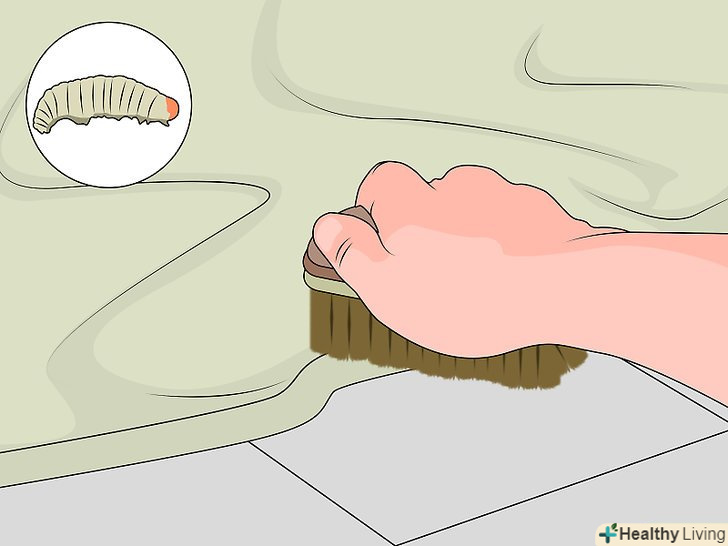 Ретельно почистіть одяг, щоб прибрати личинки. після того, як ви обробите одяг теплом (не забувайте робити це 1-2 рази на місяць), вичистіть одяг від комах. Гарненько потрусіть речі або проведіть по одязі щіткою з усіх боків, щоб прибрати сховалися яйця і личинки. [9]