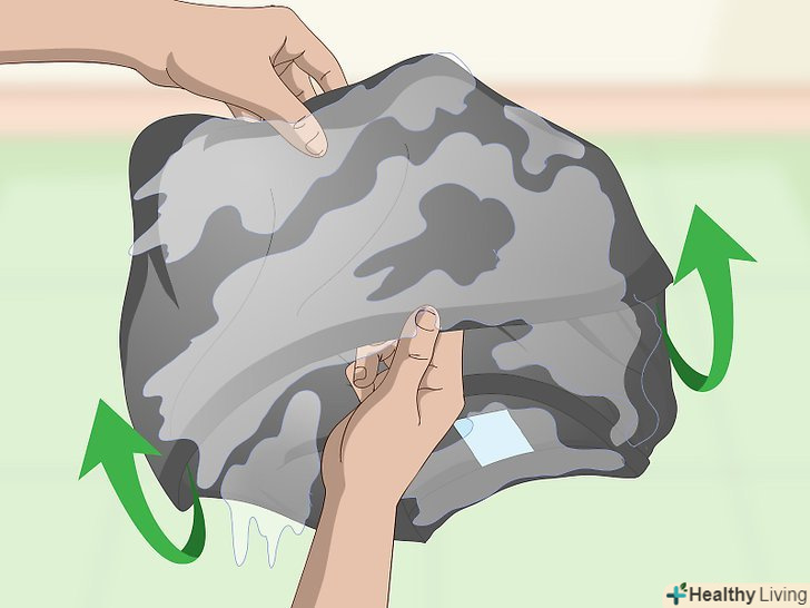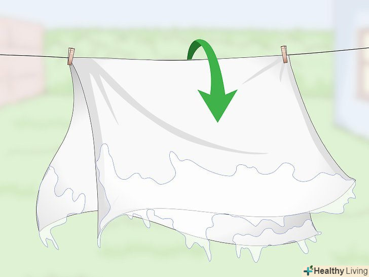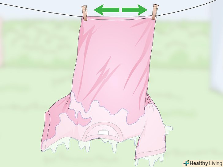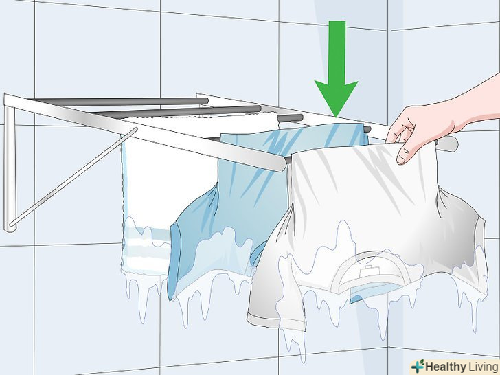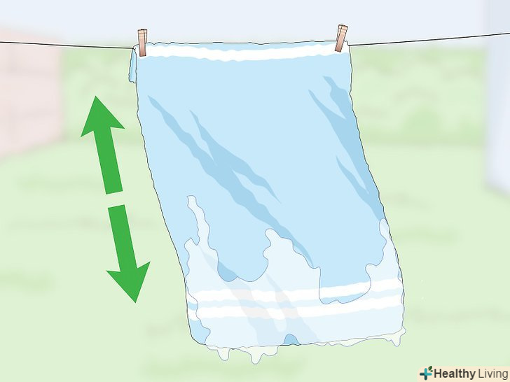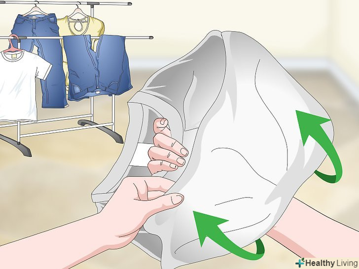 Переверніть одяг на іншу сторону. зачекайте 15-30 хвилин, а потім переверніть одяг. Якщо залишити одяг мокрою надовго, від неї почне виходити затхлий запах. Переверніть одяг, щоб запобігти цьому і прискорити процес сушіння.- В першу чергу перевертайте великі речі, такі як ковдри, а решта — за потребою. Тут все залежить від температури і циркуляції повітря в приміщенні. [15]