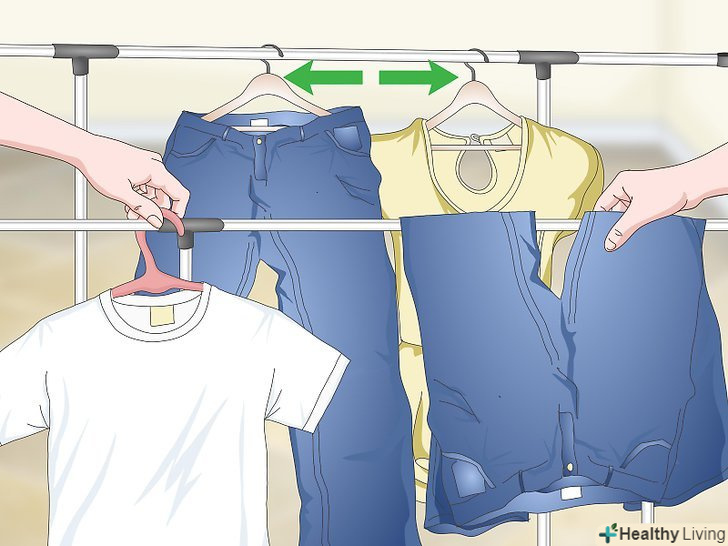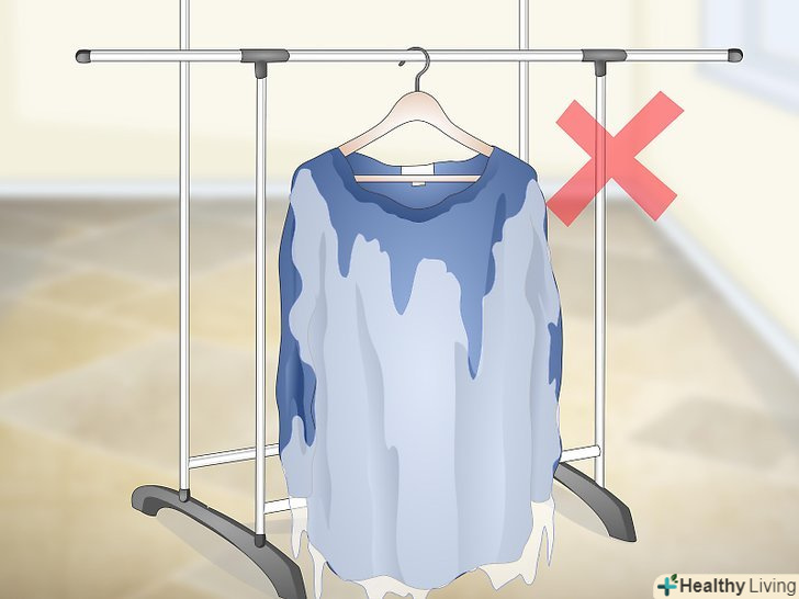 Розвісьте предмети одягу якнайдалі один від одного. перш ніж залишити одяг сохнути, перевірте, як вона висить. Навколо кожного предмета має бути достатньо вільного простору. Розвісьте одяг якнайдалі один від одного, щоб вона швидше висохла. Біля кожного предмета має бути достатньо місця. [14]