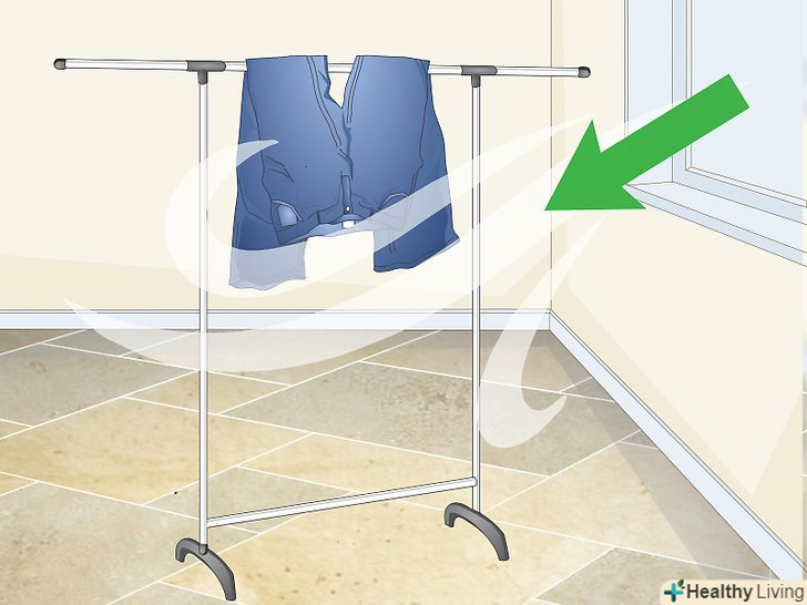 Сушіть одяг у відкритому приміщенні. щоб одяг добре висохла, забезпечте їй нормальну циркуляцію повітря. Тепло і сонячне світло теж допоможуть. Незалежно від методу сушіння, не залишайте одяг у шафі, гардеробній або іншому закритому приміщенні. Розвісьте її біля відкритих дверей, вікон і вентиляційних отворів.- Одяг необов'язково розміщувати під прямими сонячними променями, але сонячне світло значно прискорить процес сушіння.
