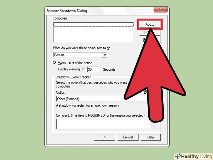 Натисніть "Додати".так ви зможете додати мережевий комп'ютер, який потрібно віддалено вимкнути.- Можна додати кілька комп'ютерів, якщо вони налаштовані на віддалене вимкнення.