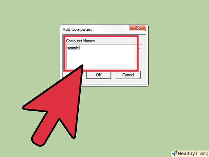 Введіть ім'я комп'ютера.введіть ім'я комп'ютера та натисніть "ОК", щоб додати його до списку.- Ім'я комп'ютера можна знайти у вікні «Система» (щоб відкрити його, натисніть⊞ Win+Pause).