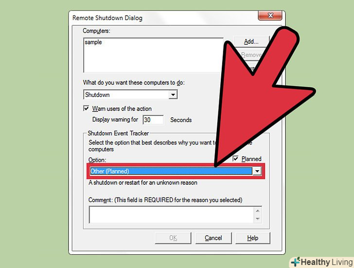- Можна додати причину і коментар в нижній частині вікна. Вони будуть записані в журнал-це стане в нагоді, якщо мережею керують кілька адміністраторів або для того, щоб переглянути свої дії пізніше.