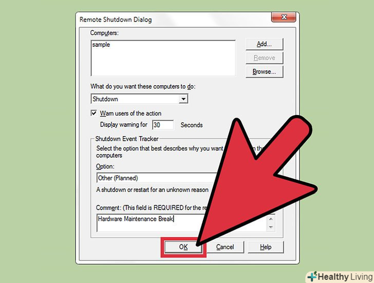 Натисніть "ОК", щоб віддалено вимкнути мережеві комп'ютери.якщо ви встановили попередження, комп'ютери вимкнуться після закінчення відведеного часу; в іншому випадку комп'ютери вимкнуться без зволікань.[2]